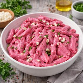 Beetroot sauce pasta is a vibrant, creamy dish made with roasted or sautéed beets, garlic, lemon, and feta, tossed with pasta for a naturally colorful and nutrient-packed meal.