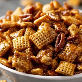 This homemade toffee Chex mix combines crunchy cereal with a buttery, caramel-like coating baked to perfection. It’s simple, addictive, and perfect for parties, holidays, or everyday snacking.