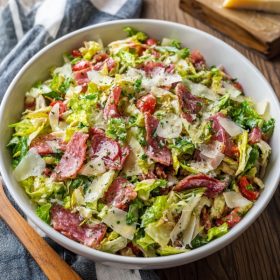 A crisp and flavorful La Scala chopped salad made with finely shredded lettuce, savory salami, creamy cheese, and a tangy homemade dressing—perfectly balanced and easy to prepare.