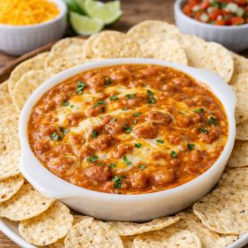 Serve family style in the baking dish with tortilla chips