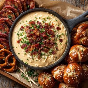 A few autumns ago, my husband and I joined our neighbors for a small-town craft beer festival held in the old town square. The air smelled of smoked sausages, soft pretzels, and roasted nuts. A young couple running a rustic food truck handed out tiny cups of hot, cheesy dip with bits of crispy bacon and chives sprinkled on top. It was rich, comforting, and carried that perfect tang of beer. I knew right then I’d be trying to recreate it at home.