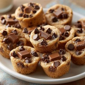 Soft, buttery cookie bites with a gooey peanut butter center and a sprinkle of chocolate chips. They’re baked in muffin cups for the perfect bite-sized treat that’s both fun to make and irresistible to eat.