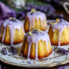 These delicate mini lemon cakes are soft, lightly sweet, and infused with fresh citrus flavor, finished with a gentle lavender glaze that adds a subtle floral touch.