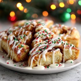 Fruit and Nut Topping: For an extra festive touch, top the cinnamon rolls with candied pecans, cranberries, or dried fruit. This adds a little sweetness and texture.