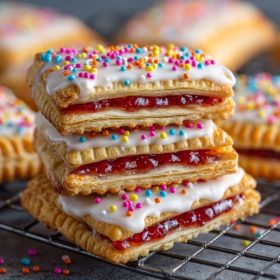 These homemade protein pop tarts are a healthy spin on a childhood favorite. With a golden whole-wheat crust, strawberry jam filling, and a light vanilla glaze, they’re packed with flavor and a boost of protein—perfect for breakfast, post-workout snacks, or a cozy afternoon treat.