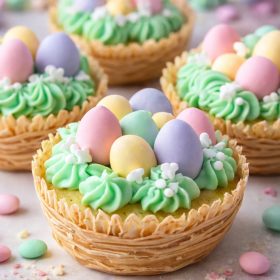 Easter Basket Sugar Cookie Cups always bring out the joy in springtime gatherings, whether you’re baking with grandkids, preparing for a classroom party, or simply looking to add color to your table. They’re cheerful to look at and even better to bite into, with that soft cookie base and sweet swirl of frosting topped with candy crunch.