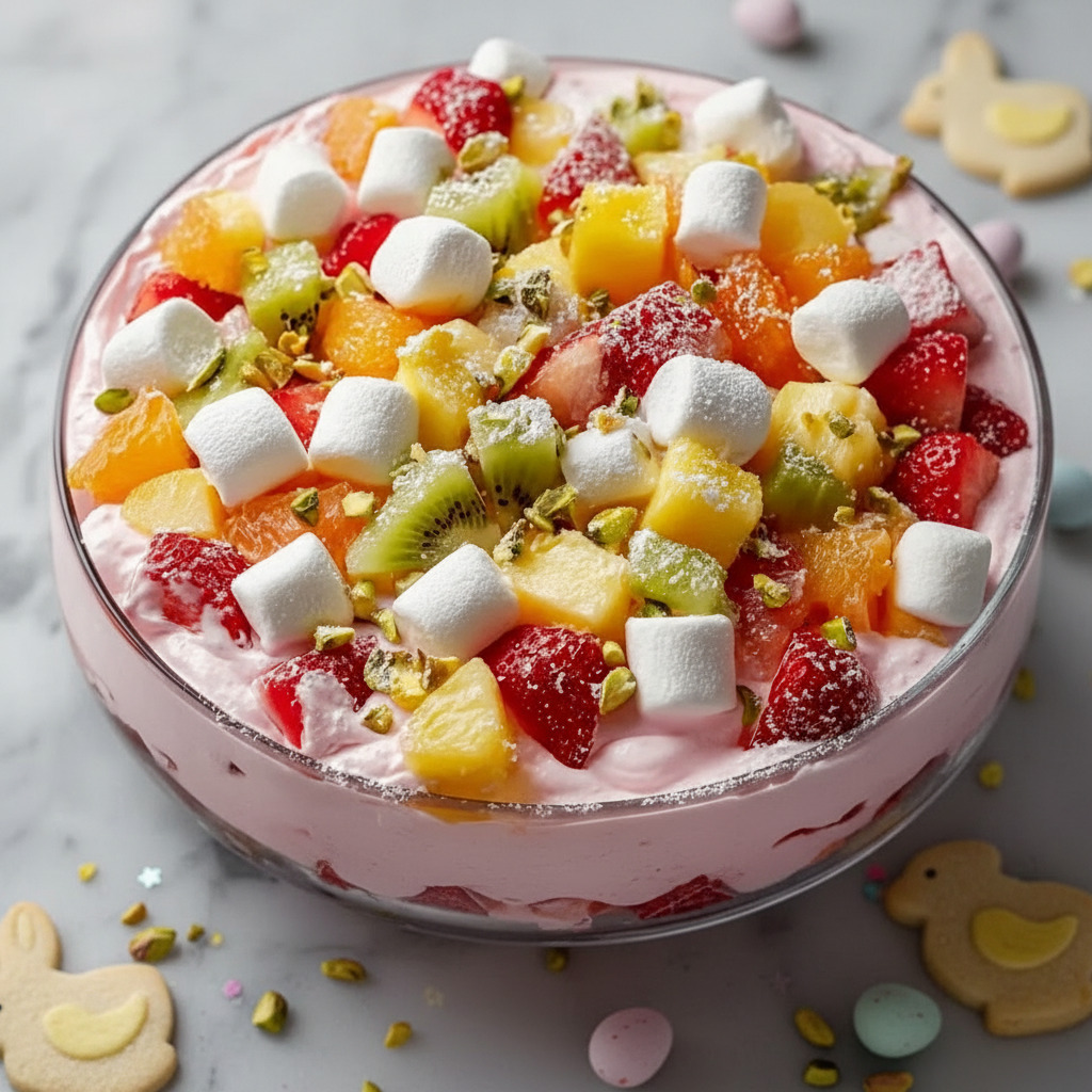 Easter Cheesecake Fruit Fluff offers the pleasure of a dessert that comes together without fuss, leaving space to focus on family and the rhythm of the day. Even after the serving bowls are empty, it lingers as a small but meaningful part of a holiday spent together.