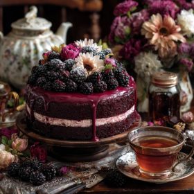 This cake captures all of that. It’s tender, dark, and mysterious with a hint of wild blackberry tartness that makes every bite feel like a secret. When topped with clouds of whipped cream and jeweled with fresh berries, it looks like something from a midnight ball. A little gothic, a little romantic—and absolutely irresistible.