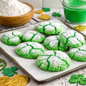Easy St Patricks Day Cookies are soft cake mix cookies rolled in sugar for a crackled finish and tinted bright green for the holiday. They are quick to prepare, cheerful to serve, and ideal for sharing.