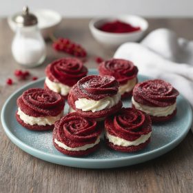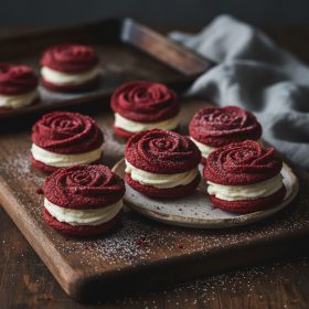 Red Velvet Rose Cookies add a thoughtful rhythm to the kitchen, especially on days set aside for small, meaningful moments. Shaping each rose asks for patience and a steady hand, shifting baking into something slower and more deliberate. The steps move gently from mixing to piping, creating a flow that feels focused without pressure.