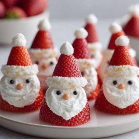 Every holiday season, our kitchen fills with laughter, carols, and the scent of fresh berries. Watching my grandkids line up their little Santas—some lopsided, some perfect—is pure joy. These tiny treats might not last long on the plate, but the memories made while creating them linger for years.