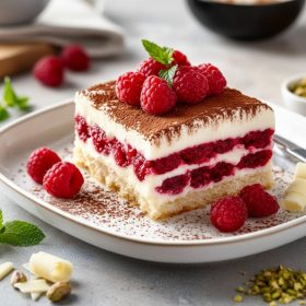 Chocolate Raspberry Tiramisu: Add 2 tablespoons cocoa powder to the mascarpone filling. Layer in chopped dark chocolate between cream layers for a bittersweet bite.