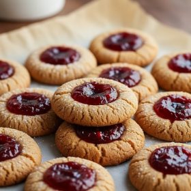 Orange Marmalade Thumbprints: Replace cranberry jam with orange marmalade. Add ½ teaspoon orange zest to the dough for brightness. Bake as instructed. The flavor profile becomes citrusy with a spicy gingerbread base.
