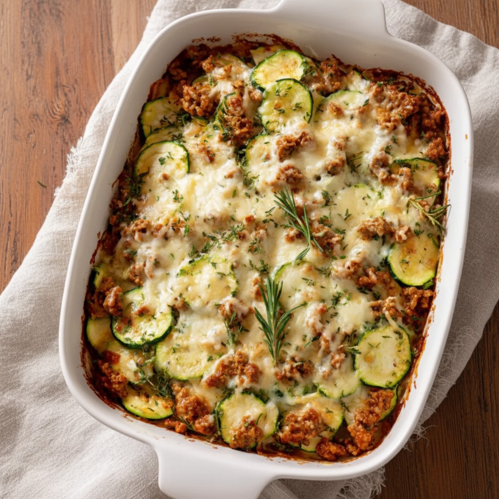 Place the baking dish uncovered in the preheated oven. Bake for 30–35 minutes until the top is golden and bubbly, and the zucchini is fork-tender. Let the casserole rest for 5 minutes before serving so the layers can settle.