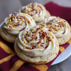 These Chewy Butterbeer Cookies capture the cozy flavors of butterscotch, vanilla, and brown sugar in soft, golden rounds topped with a light, creamy frosting. Inspired by the beloved Harry Potter drink, they’re perfect for holidays, birthdays, or any time you crave a little magic.