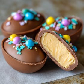 These creamy peanut butter eggs feature a smooth, sweet filling wrapped in a rich chocolate shell, finished with simple decorative touches for a homemade treat that feels special without being complicated.