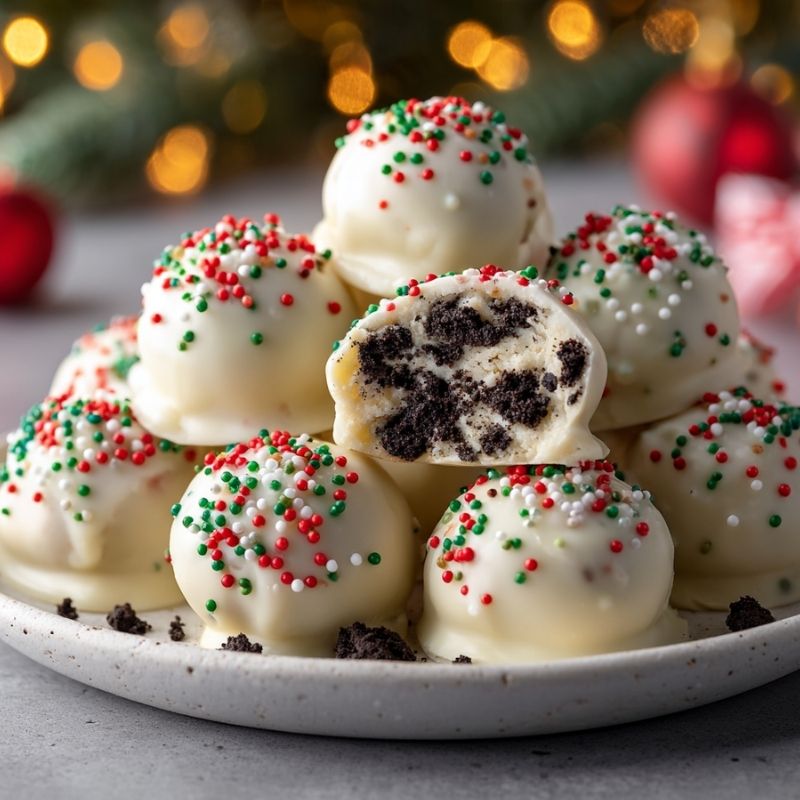 These Oreo Balls for Christmas are rich, chocolatey bite-sized treats coated in smooth chocolate and decorated with festive sprinkles, making them a perfect no-bake holiday dessert.