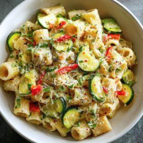 A creamy, herb-filled Italian zucchini sauce tossed with pasta, made with fresh vegetables, olive oil, and Romano cheese for a light yet comforting meal.