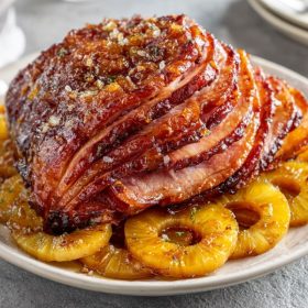 This pineapple brown sugar glazed ham is tender, juicy, and coated in a glossy caramelized glaze that’s sweet, tangy, and savory all at once. It’s simple enough for first-time cooks but elegant enough to be the star of your holiday table.