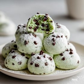 White Chocolate Mint Snowballs: Replace mini chocolate chips with white chocolate chips for a sweeter, creamier profile.