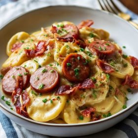 Crockpot Pierogi Casserole with Kielbasa is a comforting slow‑cooked dish featuring cheddar pierogies, smoked sausage, and a creamy cheese sauce that melts together beautifully.