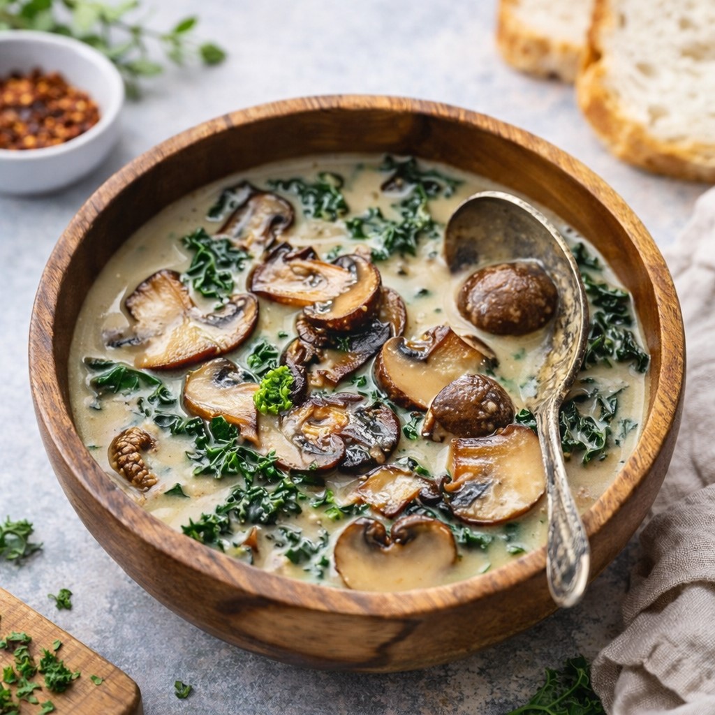 Mushroom Caramelized Onion And Kale Soup filled my kitchen with the gentle scent of sautéed onions one cool Saturday afternoon when the house was unusually lively. My daughter had come by with a bag of fresh kale from the farmers market, still bundled with a little twine and a few leaves peeking out the top.