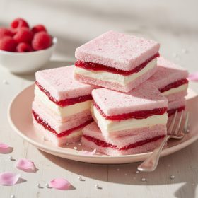 Mixing and spooning batter into patty pans felt easy, unrushed. Once cooled, the cakes took on their final look dipped in jewel-toned jelly, rolled in coconut, stacked with a swirl of cream each one looking like a celebration on its own.