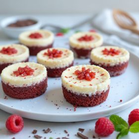 Later that afternoon, once the cheesecakes cooled on the counter, my daughter stopped by after work. We talked about busy days, upcoming holidays, and how recipes tend to mark time in quiet ways. Red Velvet Brownies Bottom Mini Cheesecakes sat neatly arranged on a plate, ready to be shared, already carrying a sense of occasion before anyone took a bite.