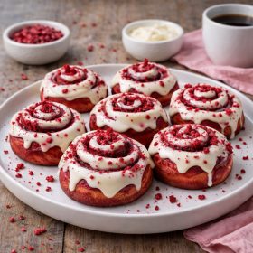 Red Velvet Valentine’s Day Cinnamon Rolls have a way of turning an ordinary morning into something intentional. The color alone feels celebratory, but it’s the softness of the dough and the familiar cinnamon warmth that make people linger at the table. Sharing these rolls felt like sharing a message without writing it down.