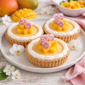 Mango Cream Easter Egg Tart often appears in my kitchen right as the days begin to stretch a little longer and Easter plans start taking shape. One afternoon before the holiday, my husband was setting out serving plates while my granddaughter stood nearby, carefully choosing which edible flowers would make it onto the tart.