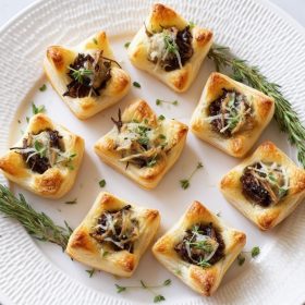 The magic is in their contrast: crisp crescent cups cradle the rich caramelized onion center, while the Gruyère melts into a soft, savory crown. These aren’t just finger food they’re mini experiences. You get the essence of a full bowl of French onion soup in one delightful bite, minus the spoon.