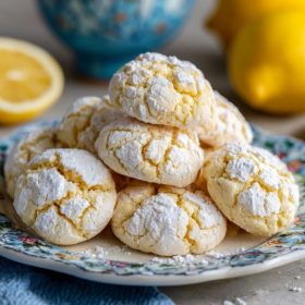 These soft and zesty sourdough lemon crinkle cookies are tender, lightly tangy, and coated in powdered sugar for a delicate crackled finish.