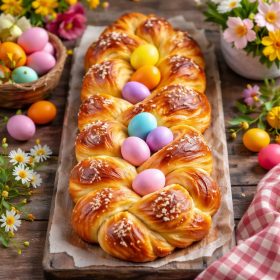 Italian Easter Bread is a soft, lightly sweet braided bread infused with vanilla and citrus zest, traditionally decorated with dyed eggs and baked to a golden finish for Easter celebrations.